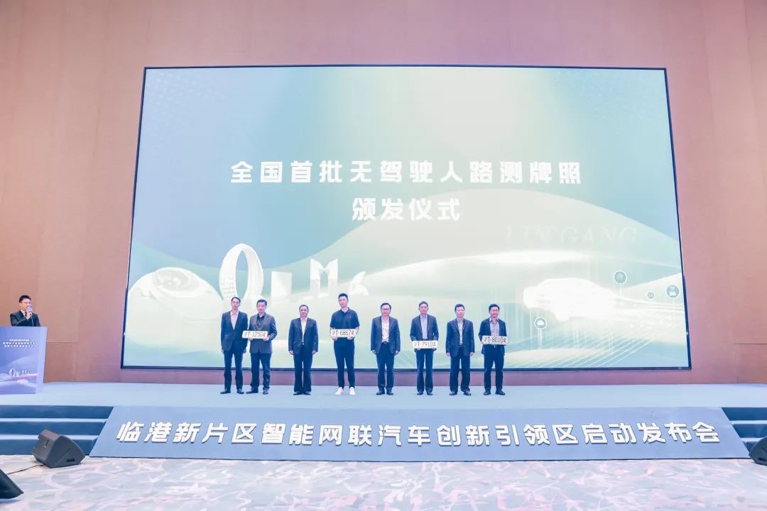6月8日,上海临港新片区智能网联汽车创新引领区启动发布会上,友道智途、图森未来、赛可智能、云骥智行四家企业15辆车获颁全国首批无驾驶人路测牌照。