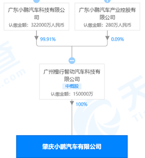 天眼查信息显示,肇庆小鹏为广州橙行智动汽车科技有限公司的全资子公司,广州橙行智动汽车科技有限公司的控股股东为广州小鹏科技有限公司,对其持99.91%的股权。