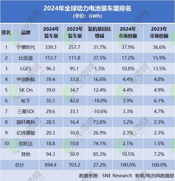 另据韩国研究机构SNE Research发布的数据显示,2024年,LGES、SK On装车量均实现了增长,三星SDI则同比下滑10.6%,三家总计装车量达164.9GWh,市场份额为18.5%。据分析,三星SDI下降的主要原因是欧洲和北美市场主要汽车制造商电池需求减少。