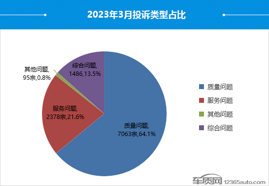 据国内领先的缺陷汽车产品信息收集平台车质网统计,2023年3月车质网共受理车主有效投诉信息11,025宗(其中含3宗针对第三方平台投诉),刷新了月投诉量历史同期最高纪录,环比上涨约10%,同比上涨5.6%。