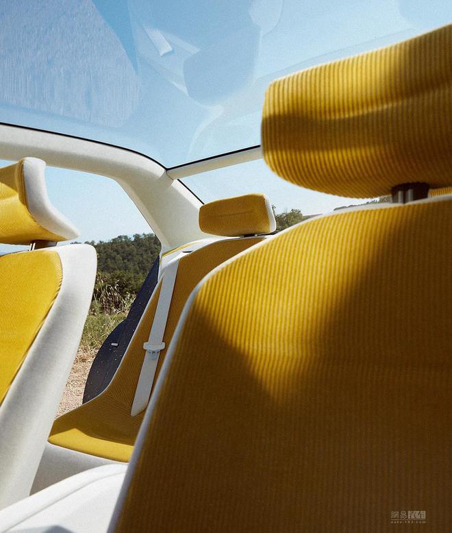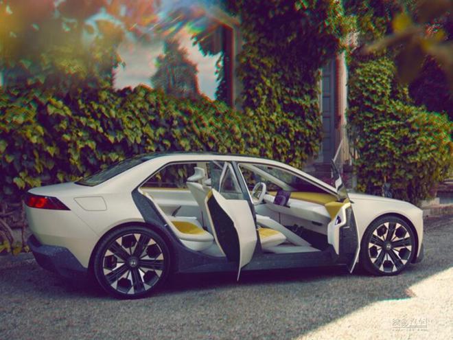 白色车漆透着淡淡的黄色;搭配黑色侧裙、保险杠与车身颜色形成鲜明的对比。另外宝马新世代概念车还提高再利用原材料的比例并大幅减少材料种类,再加上改进的拆解概念,有助于优化新世代车型的可回收性。