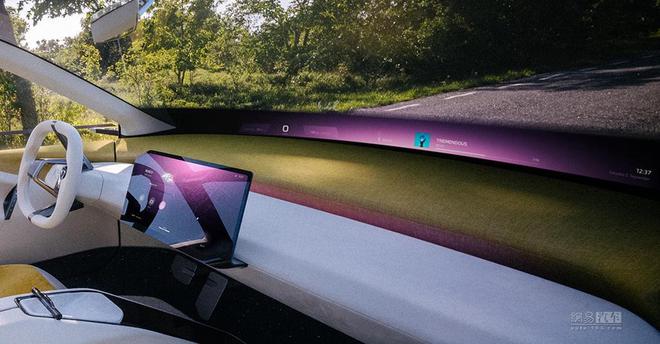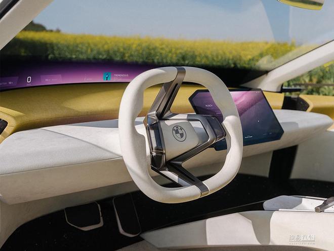 宝马新世代概念车的物理按键已被减到最少。人车交互通过全景视域桥、中央信息显示屏和全新多功能方向盘得以完成。